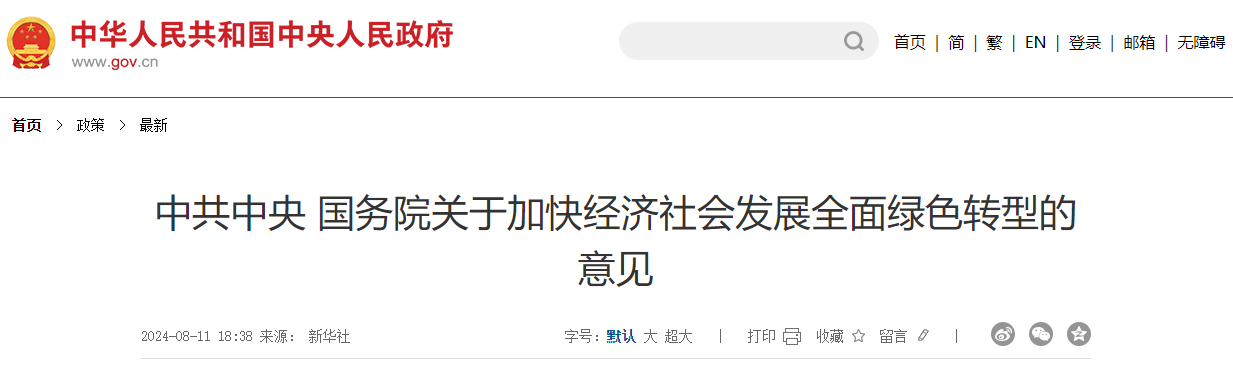 中共中央?國(guó)務(wù)院關(guān)于加快經(jīng)濟(jì)社會(huì)發(fā)展全面綠色轉(zhuǎn)型的意見(jiàn)