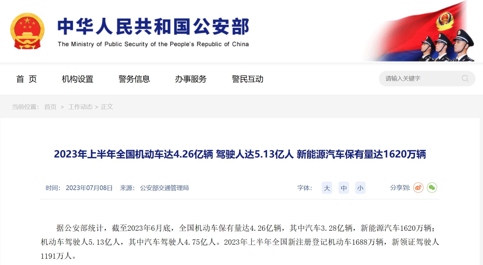 2023上半年全國機動車保有量