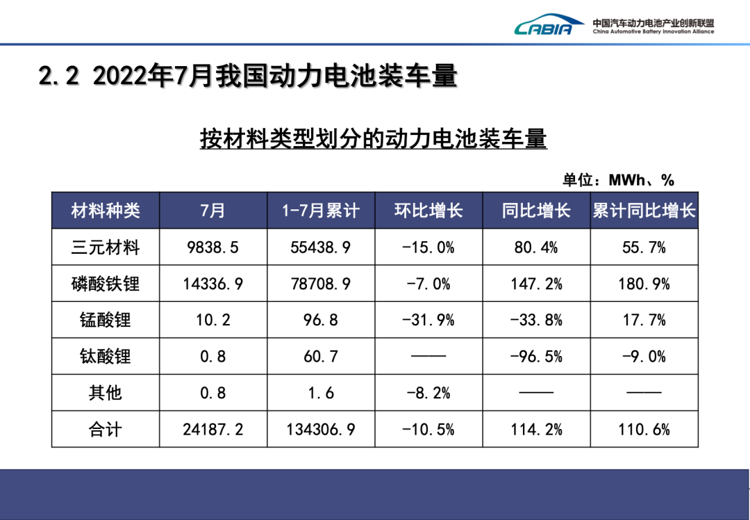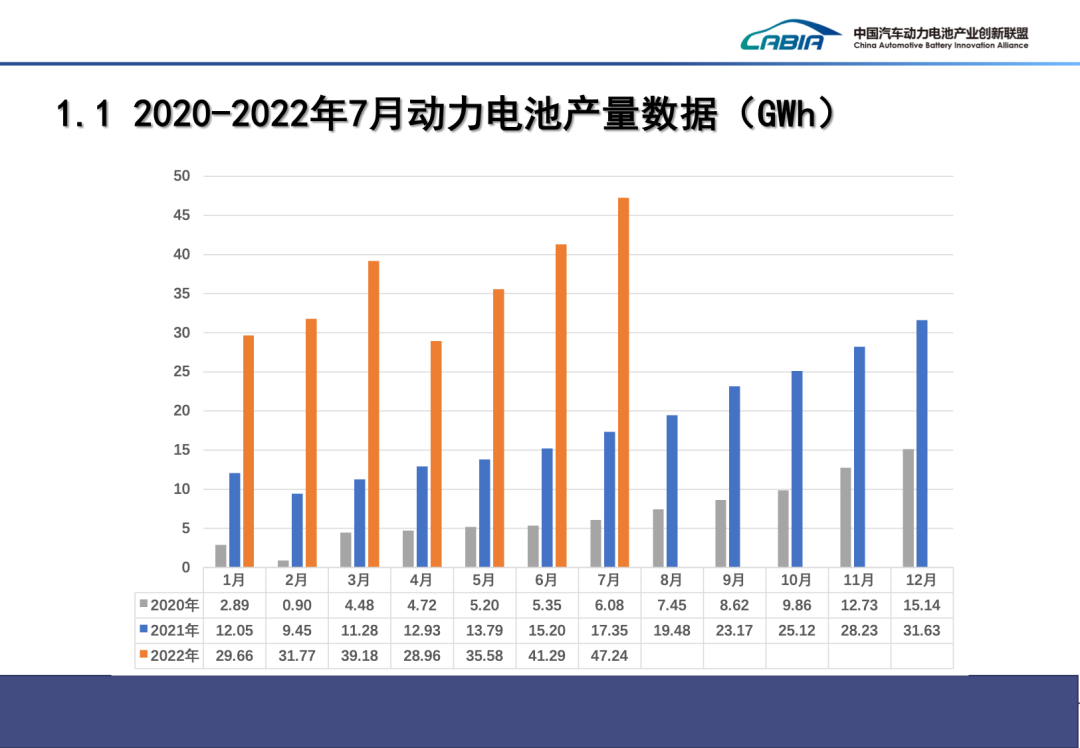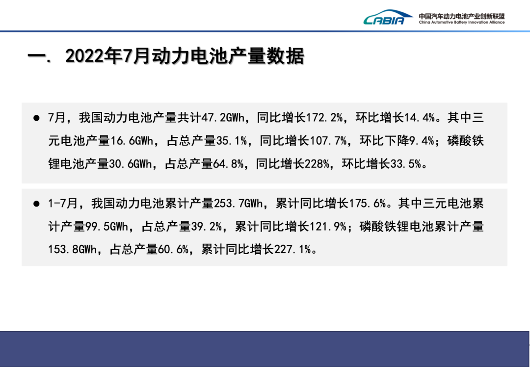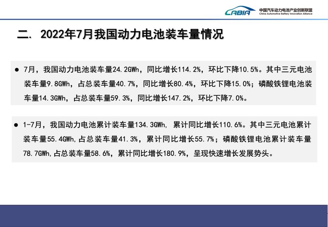 2022年7月動(dòng)力電池月度數(shù)據(jù)發(fā)布如下。