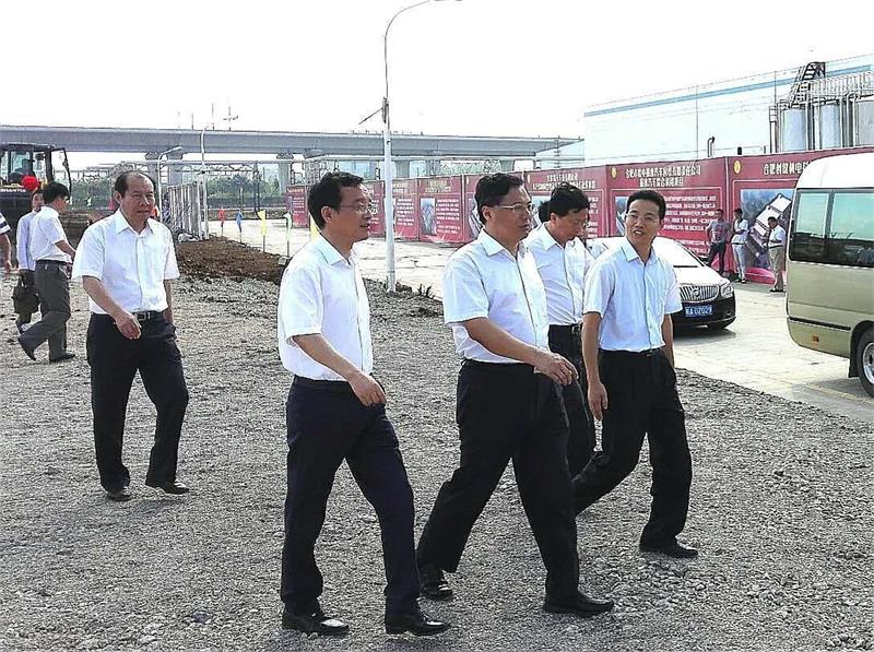 安徽省委常委、市委書記吳存榮在長豐縣委書記許華的陪同下巡查皖中報(bào)廢汽車回收公司形象展板